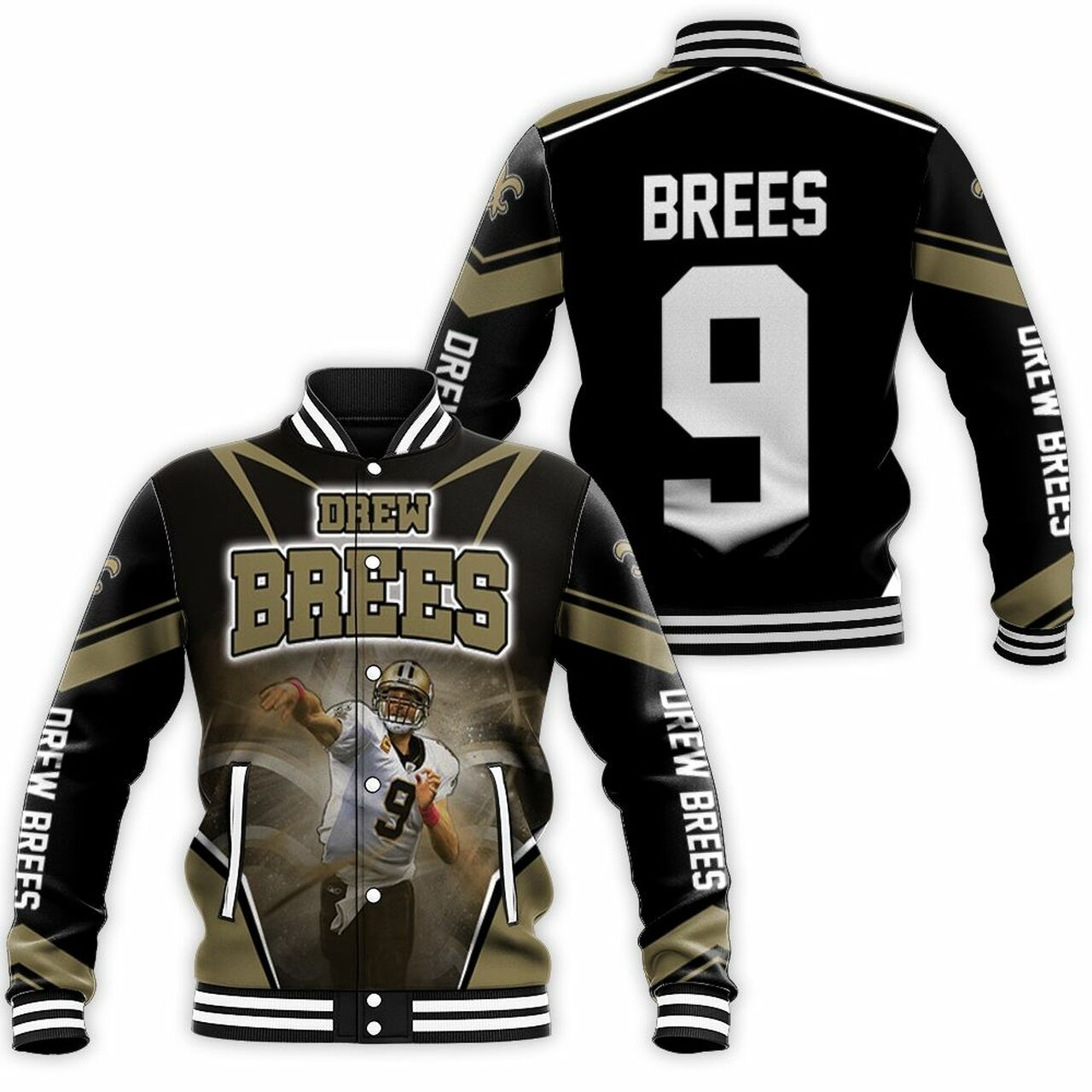New Orleans Saints Drew Brees Background Baseball Jacket Model 1778